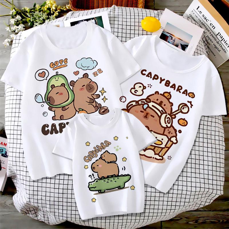 Детская базовая футболка Женская Мужская Футболки с капибарой 3-10 лет Детская одежда с коротким рукавом Мальчики Девочки Подарки на день рождения капибары