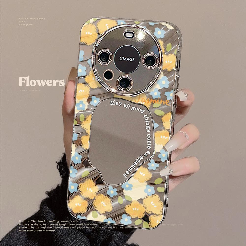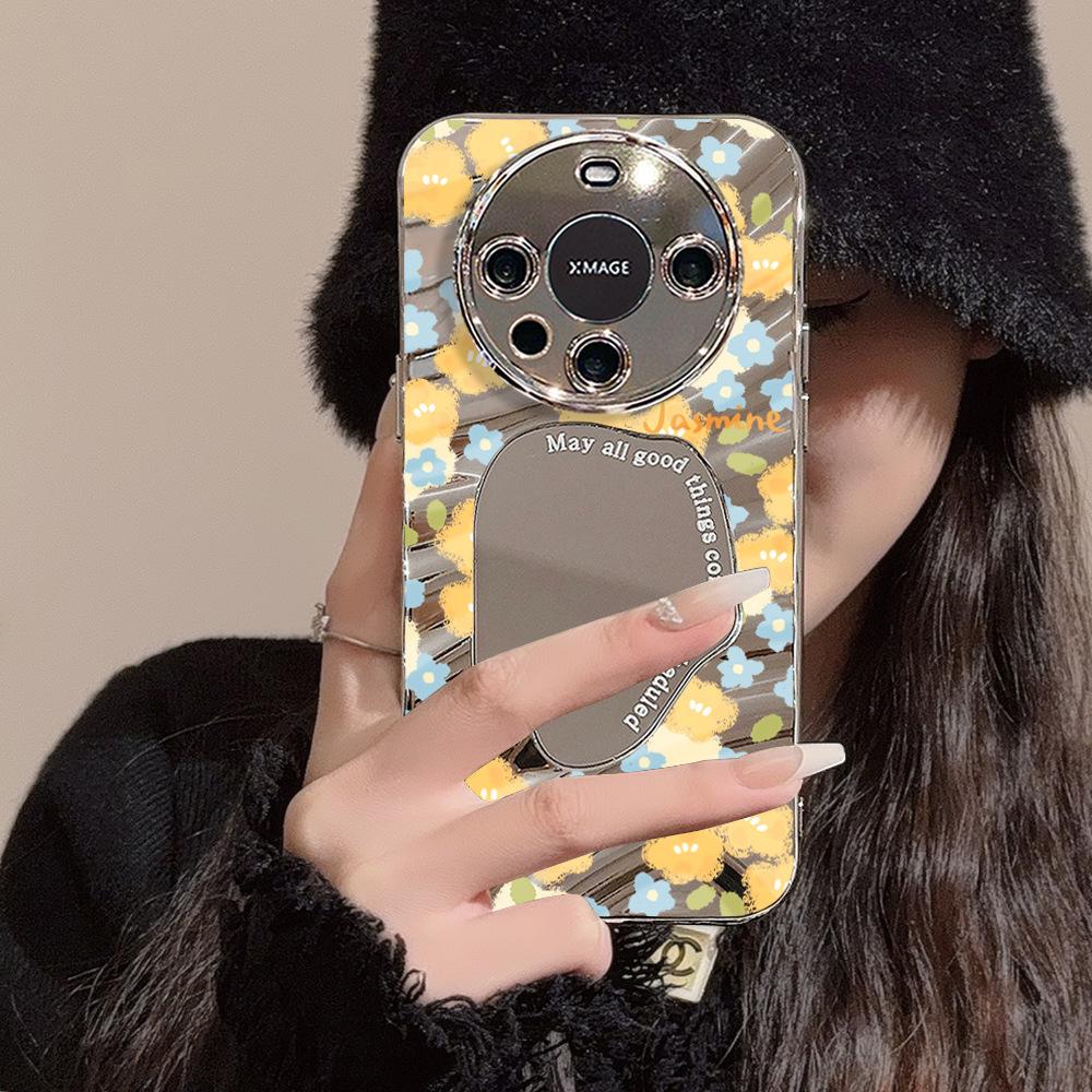 Зеркальный чехол для телефона для iPhone 16 11 13 14 для 16 Pro 12 13 15 16 Pro Max для Samsung A15 A16 A35 A55 Милый чехол для телефона с облаком, цветком и щенком с гальваническим покрытием