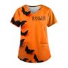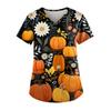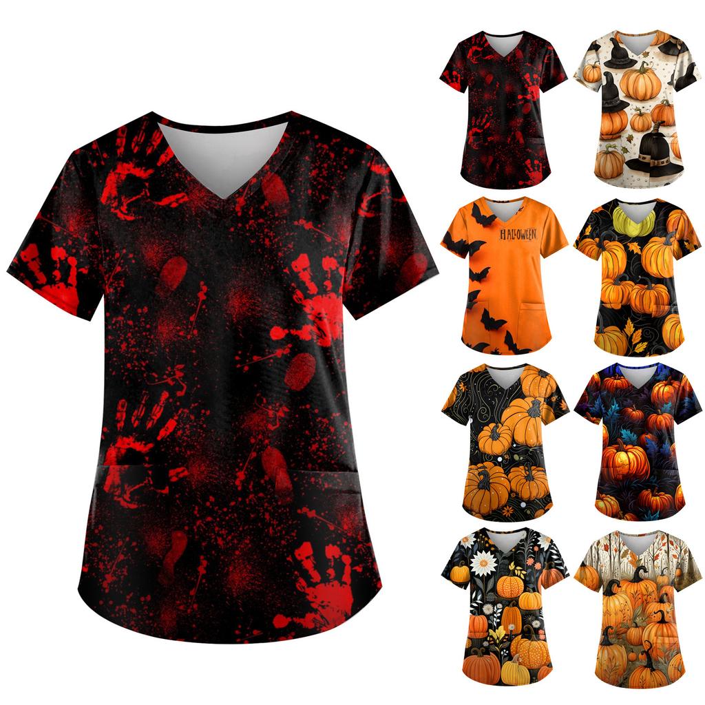 Плюс размер Хэллоуин печатная рабочая форма Топы для женщин футболки с v-образным вырезом и короткими рукавами рабочая одежда футболка с карманами