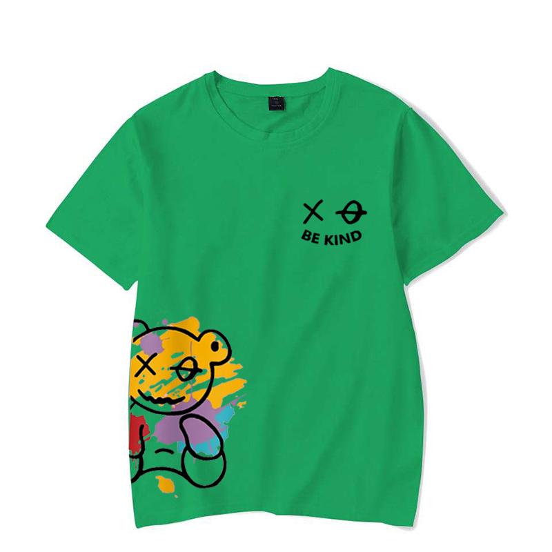 Мужская Женская Летняя Свободного Размера БУДЬ ДОБР Надпись Мультяшный Принт Повседневная Удобная Футболка Топ с Круглым Вырезом и Короткими Рукавами