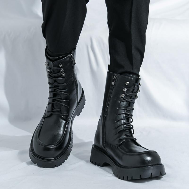 Модная мужская кожаная обувь на толстой подошве с высоким верхом Модные и минималистичные стили Вечеринка УЛИЧНАЯ Черные коричневые осенне-зимние ботинки