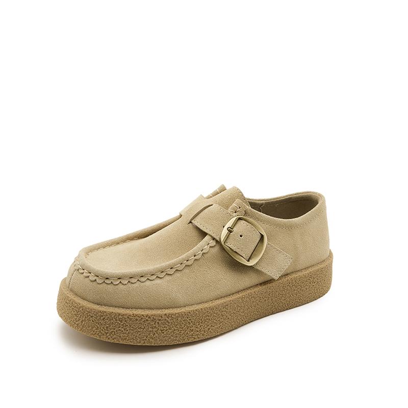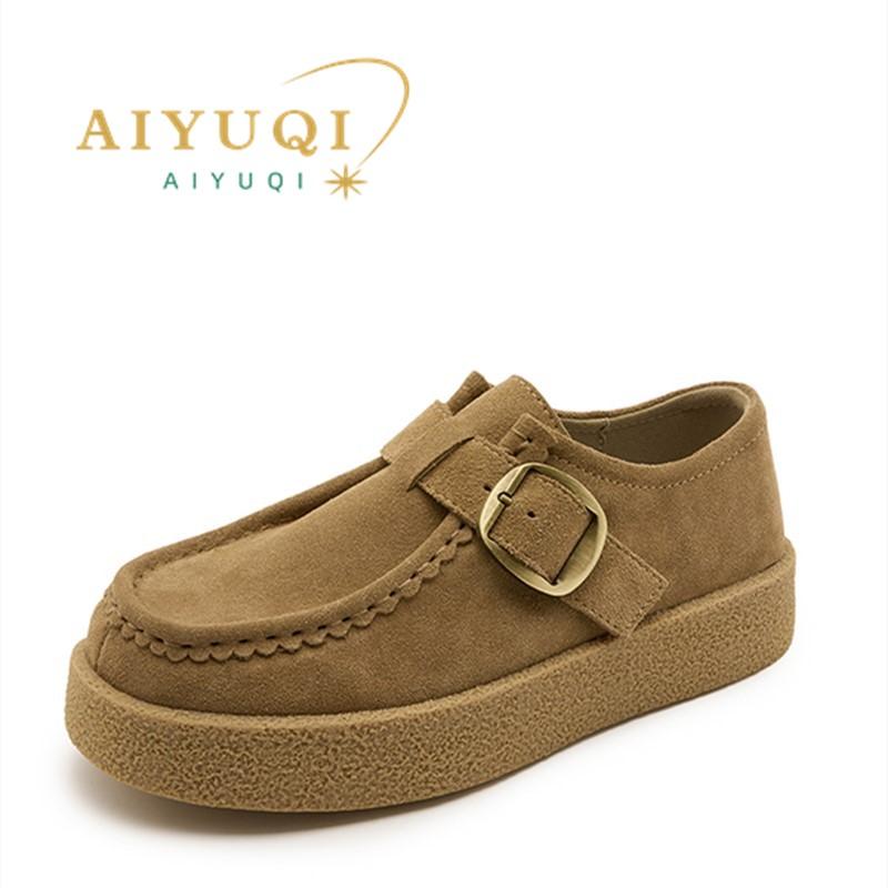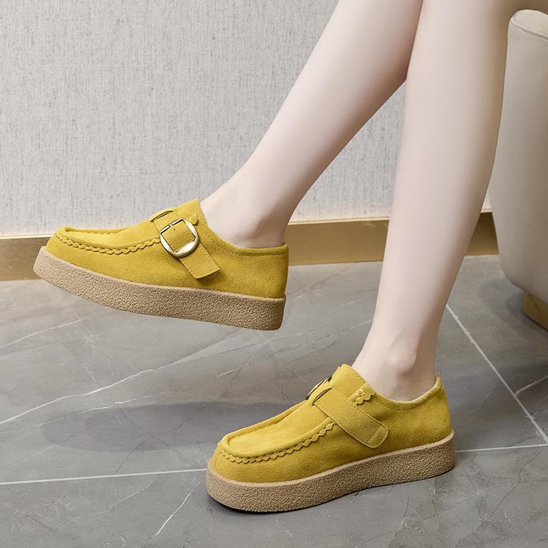 Модная женская обувь лоферы из натуральной кожи 2025 осень новая замшевая платформа обувь кенгуру женские танкетки ремешок с пряжкой слипоны женские