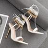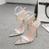 Модные остроносые босоножки с открытым носком, золотые шпильки, сексуальный ремешок-цепочка, римские летние сандалии на высоком каблуке