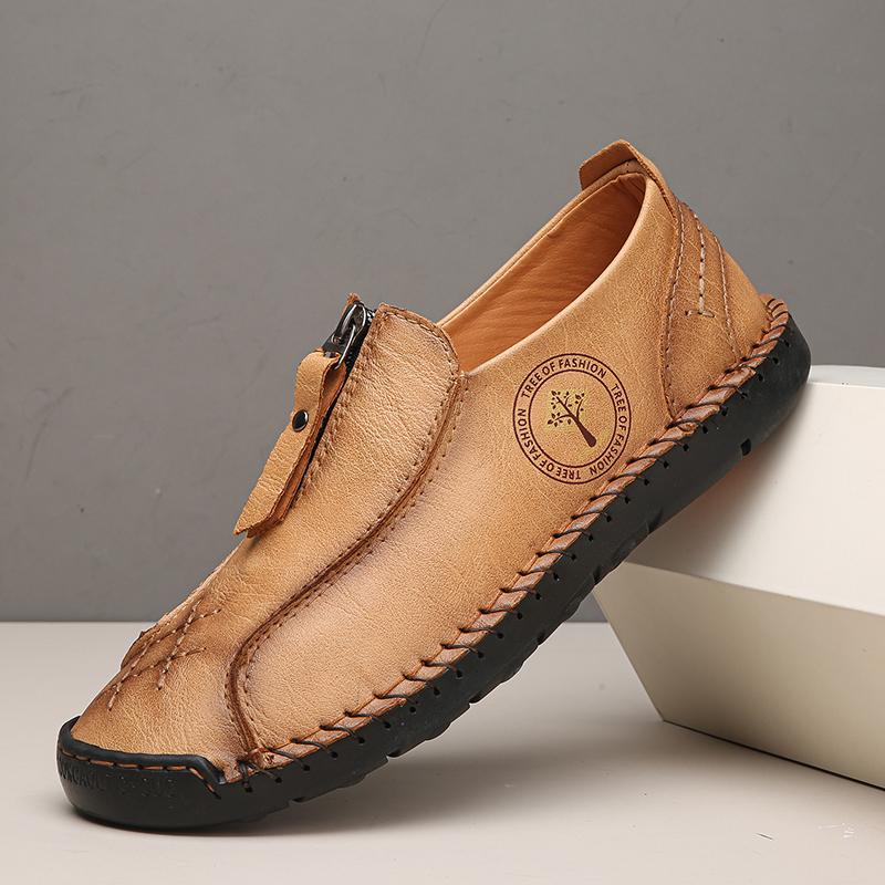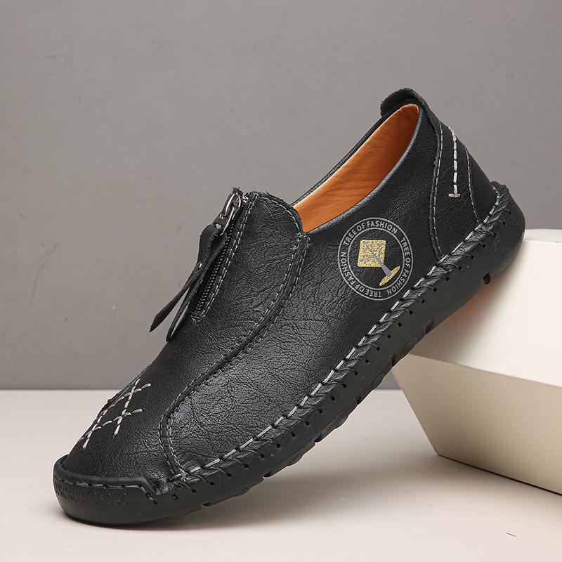 Модная весна 2025 Мужская новая удобная повседневная кожаная обувь с боковой молнией Модная мужская обувь с круглым носком ручной работы Дышащие туфли-слипоны
