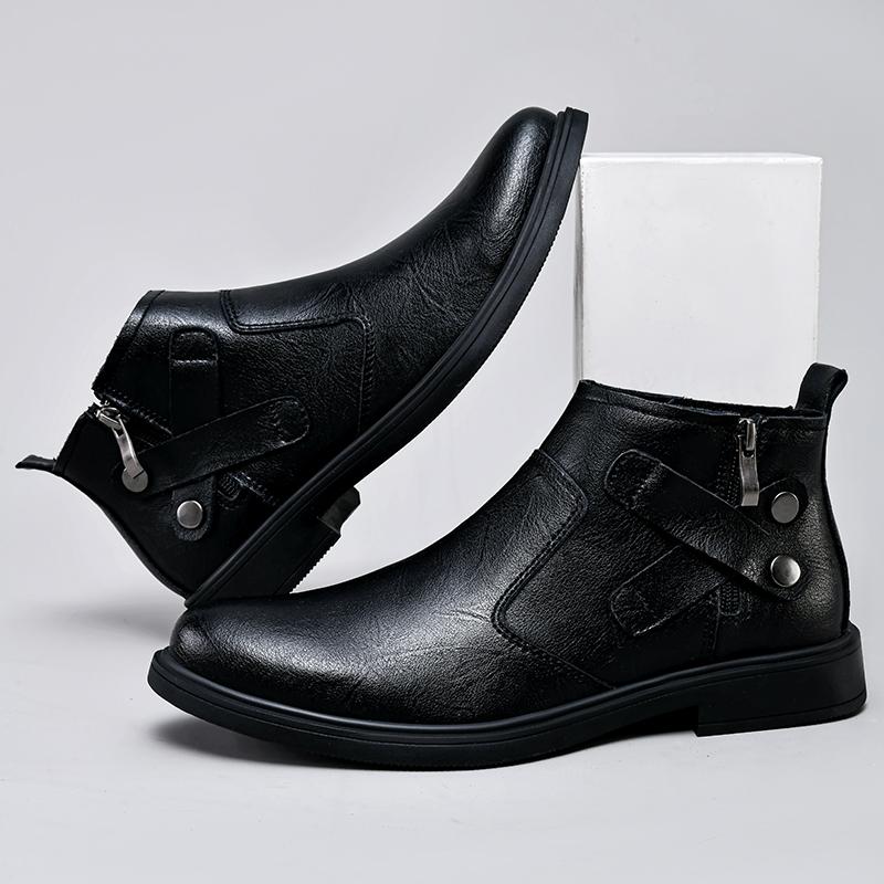 Мода 2025 Мужские ботинки в британском стиле Новая мода Мужские ботинки челси на молнии сбоку Кожаные ботильоны высокого качества Деловая обувь для платья