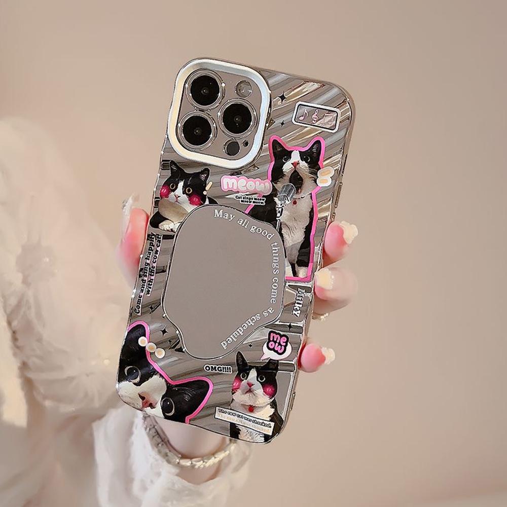 Зеркальный чехол для телефона для iPhone 16 11 13 14 для 16 Pro 12 13 15 16 Pro Max для Samsung A15 A16 A35 A55 Милый чехол для телефона с облаком, цветком и щенком с гальваническим покрытием