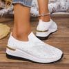 Модные женские повседневные кроссовки со стразами, дышащие, на танкетке, легкие, слипоны, новые, удобные весенние сетчатые туфли, размеры 36-43