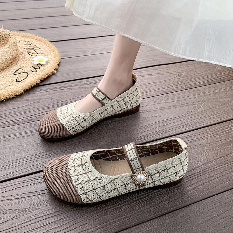 Мода 2025 Весна/Лето Балетки Женская Повседневная Обувь На Плоской Подошве Противоскользящая Модная Универсальная Вязаная Женская Обувь