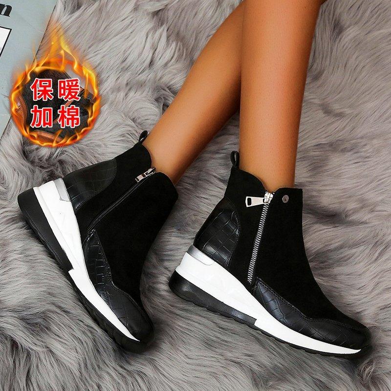 Модные женские зимние ботинки на танкетке, модные осенне-зимние теплые плюшевые однотонные платформы на молнии, корейские повседневные короткие ботильоны, обувь из хлопка — купить товар онлайн с бесплатной доставкой по всему миру!