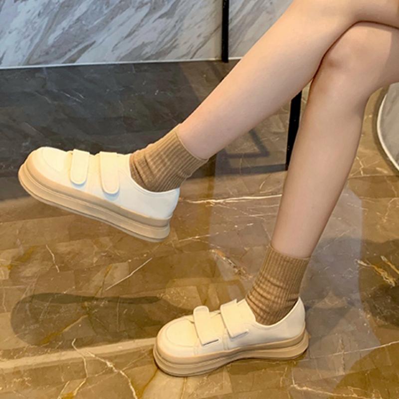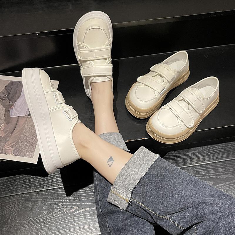 Модные весенне-осенние новые модные и удобные кроссовки на толстой подошве на липучке белого цвета