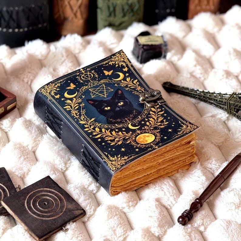 ●Кожаный блокнот «Колдовская книга теней» состоит из 200 страниц старинной бумаги, которая выглядит так, будто ее вытащили из истории.. Вы влюбитесь в старинную хлопковую бумагу ручной работы, которая является уникальной для нашего блокнота Vintage Journal.
