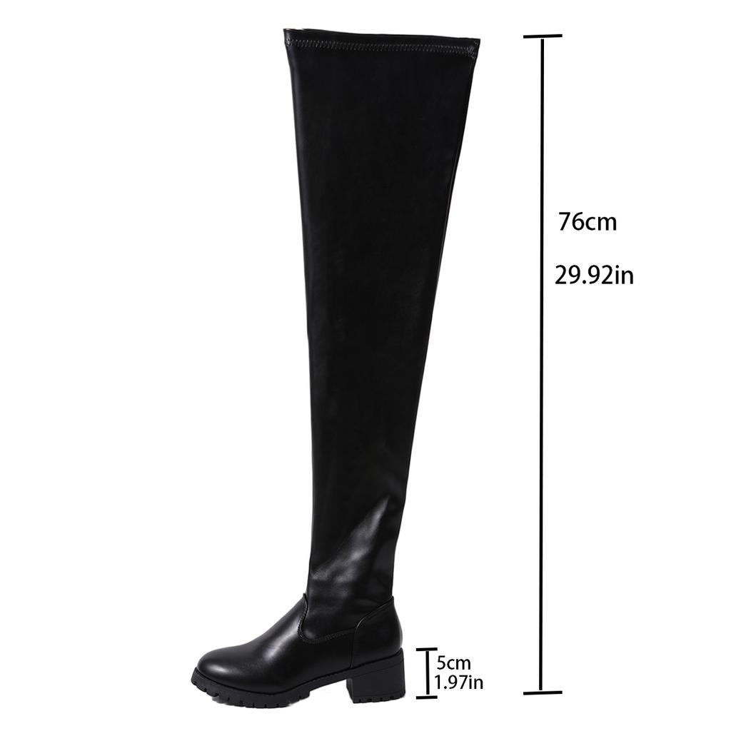 Мода Мода Черные ботфорты для женщин 2025 Осень Зима Искусственная кожа Ботфорты выше колена Женские Толстый каблук Эластичные Длинные Ботфорты — купить товар онлайн с бесплатной доставкой по всему миру!
