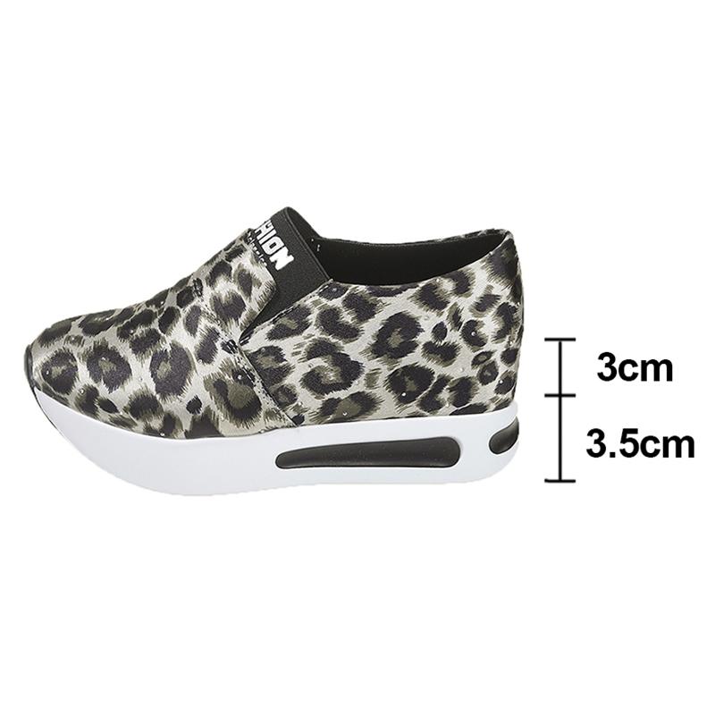 Модные повседневные спортивные туфли с леопардовым принтом для женщин, толстая подошва, слипоны, кроссовки на платформе, женские легкие кроссовки, увеличивающие рост