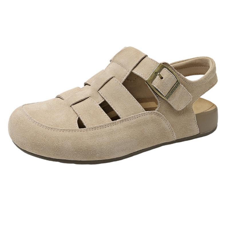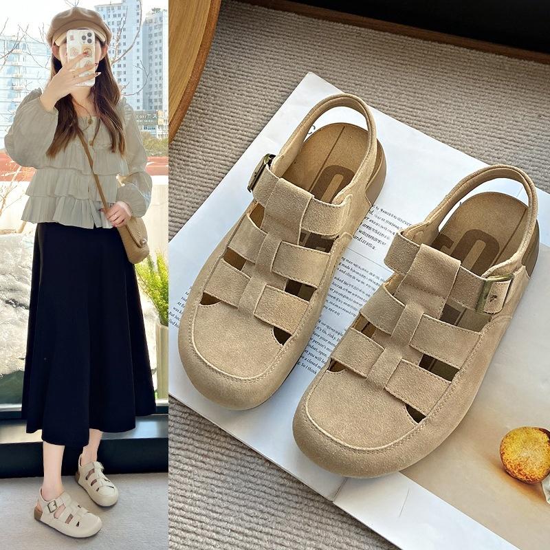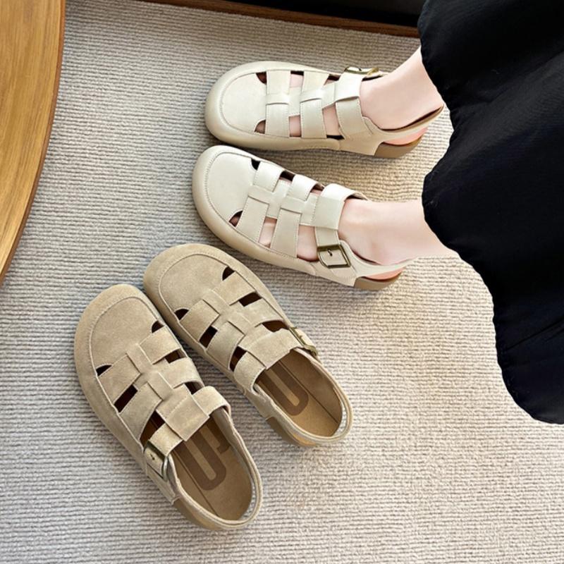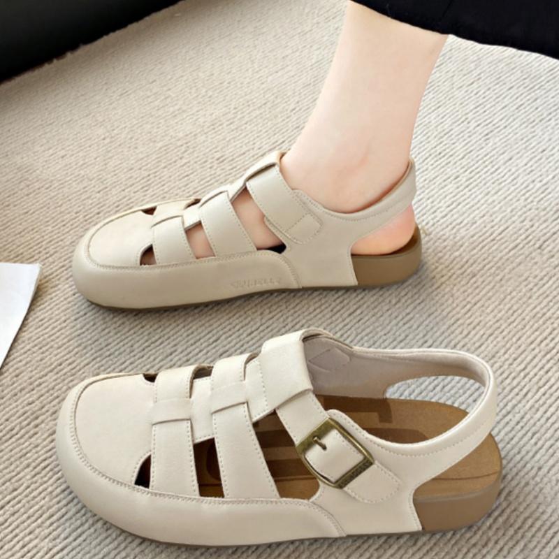 Мода 2025 Лето Новый Стиль Полые Дышащие Женские Сандалии Классические Уличные Пляжные Плоская Подошва Закрытый Носок Низкий Каблук Женские Сандалии
