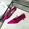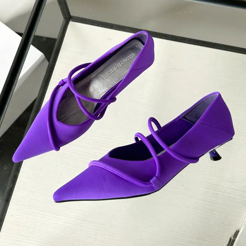 Модные замшевые женские туфли-лодочки фиолетового цвета с острым носком, лаконичные, с перекрестным ремешком, на тонком каблуке, мюли, обувь для банкета, свадьбы, элегантные туфли на низком каблуке для дам