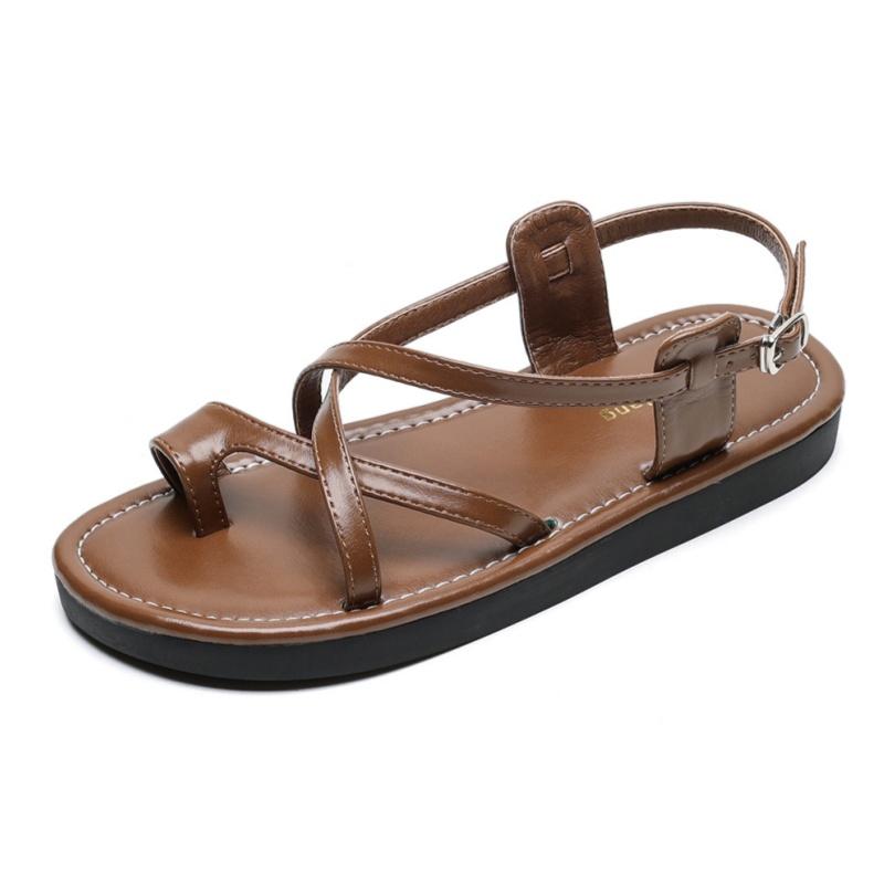 Модные новые сандалии кэжуал женские с плоским носком-клипсой, летние, римские, модные, закрывающие пальцы, с ремешком на щиколотке и пряжкой, пляжные, дизайнерские женские сандалии