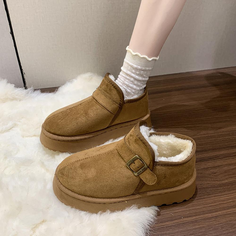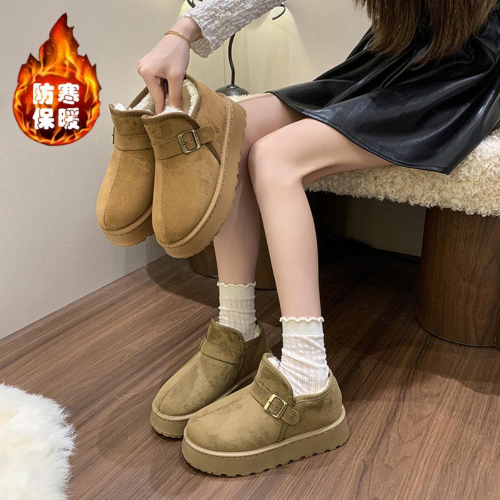 Модные металлические ботинки на снегу с пряжкой, зимние новые с круглым носком, замшевые вставки, платформа, повседневные, удобные, на плоской подошве, хлопковые ботинки для женщин