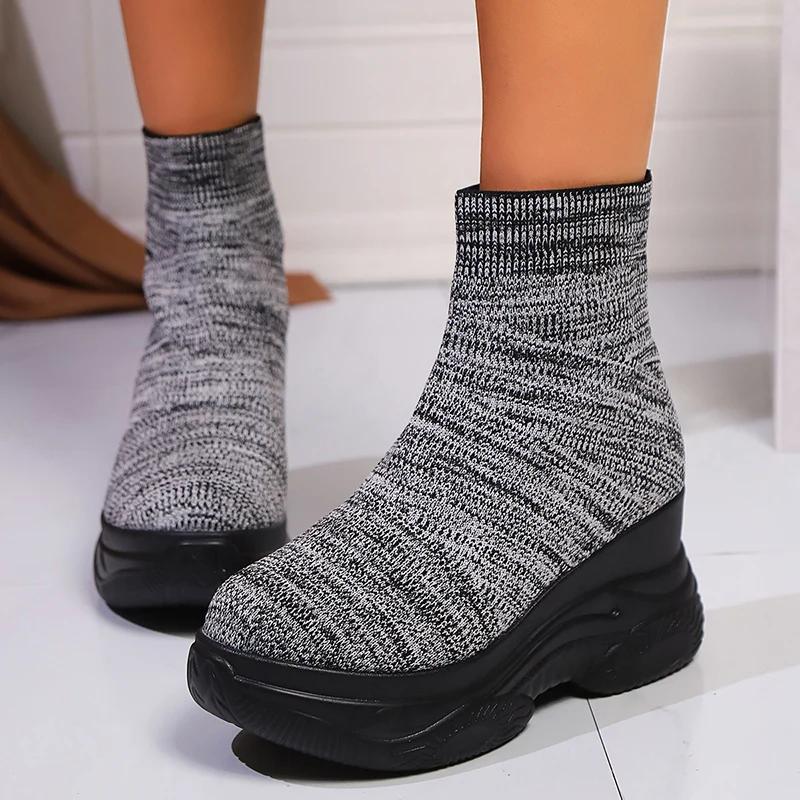 Модные вязаные кроссовки на массивной платформе для женщин, высокие, удобные спортивные туфли, женские, на толстой подошве, эластичные, слипоны, носки-кроссовки