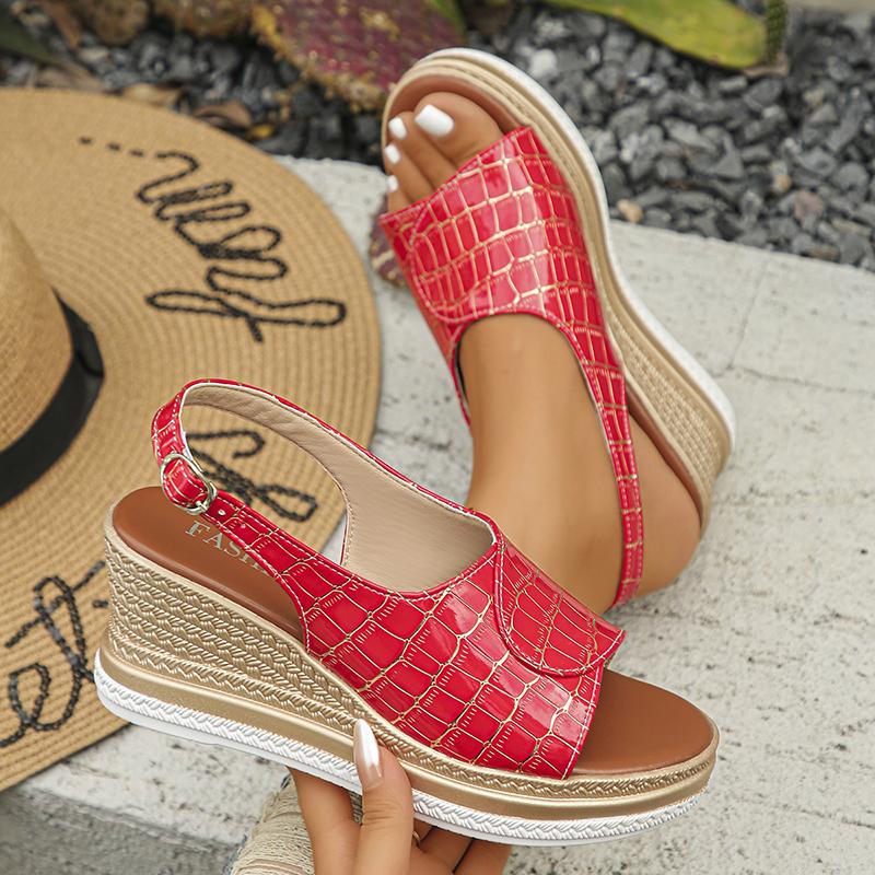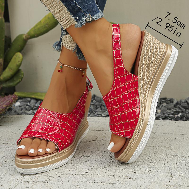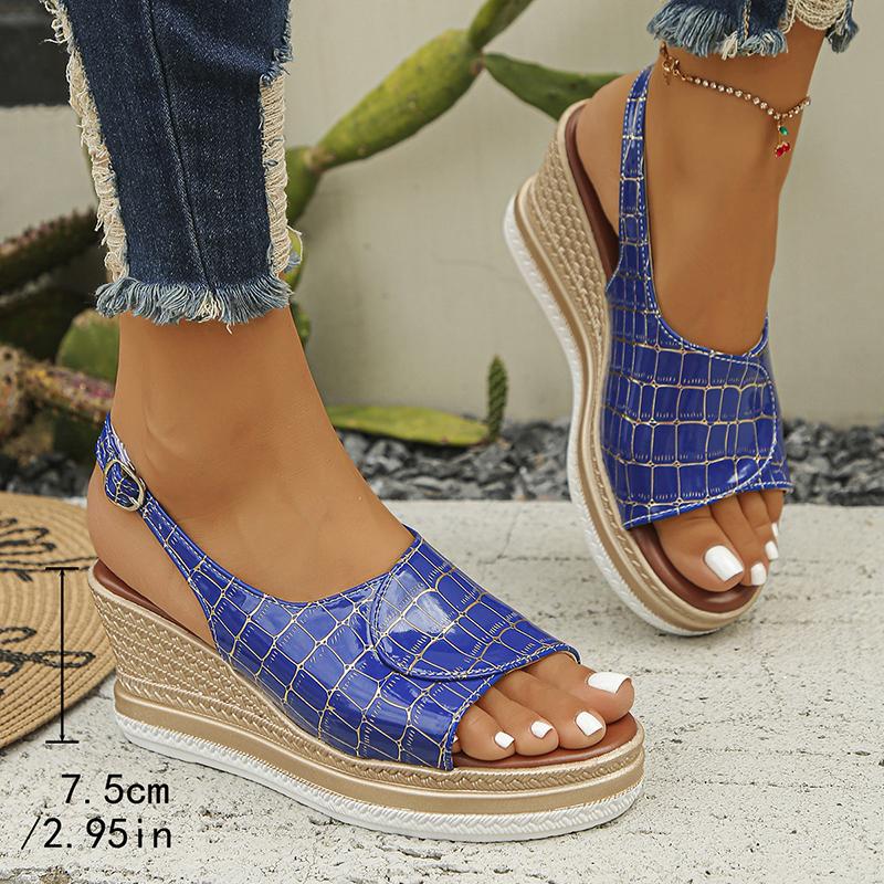 Модные сандалии на танкетке в клетку для женщин Лето 2025 Сандалии с открытым носком на массивной платформе Женские на толстой подошве с ремешком на пряжке Римские сандалии