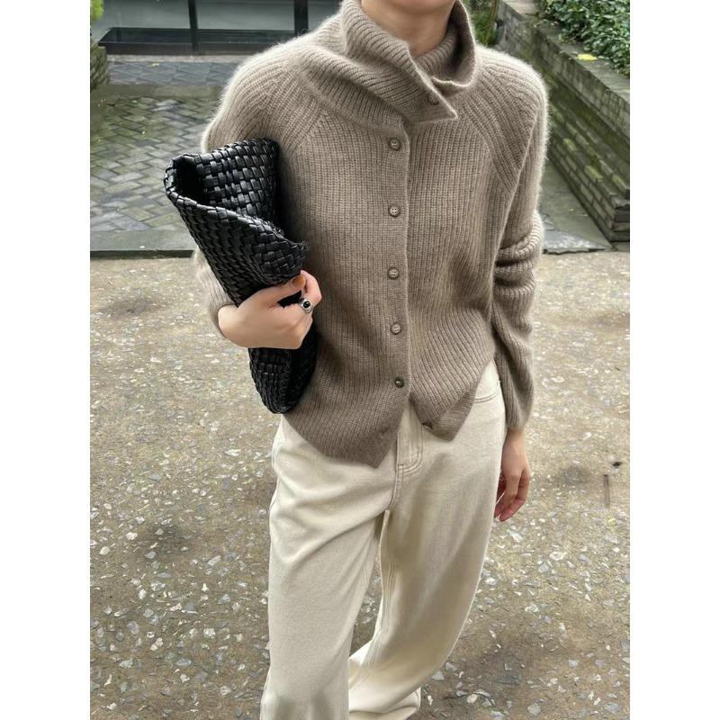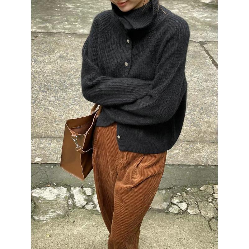 Ретро-дизайн Sense of Fine Pit Stripe свитер Lazy Wind однобортный свободный однотонный вязаный кардиган для женщин Tide
