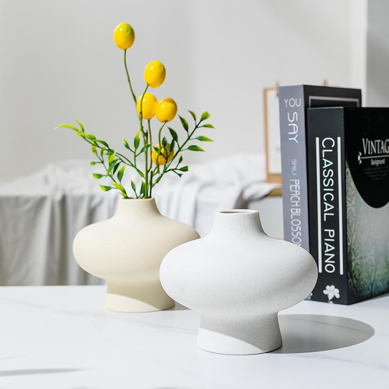 Керамическая ваза кремового цвета для декора дома и офиса с гидропонным букетом из сухоцветов, ручная работа