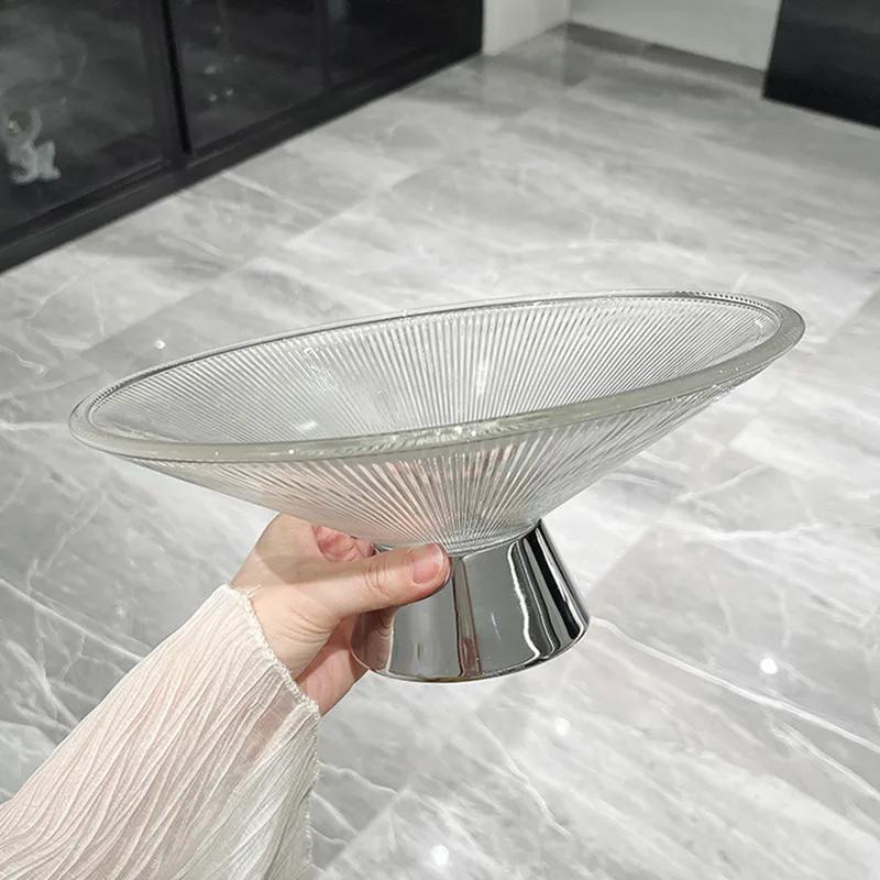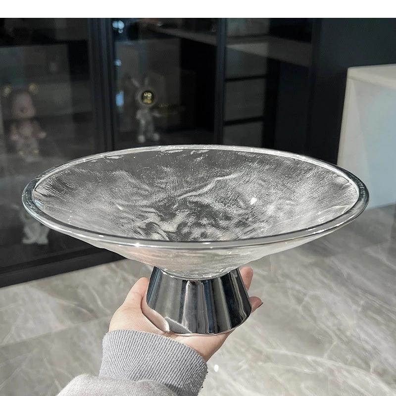 Легкая Роскошь Стеклянная Фруктовница Гостиная Орехи Десерт Конфеты Снеки Дом Кухня Посуда Высокая Ножка