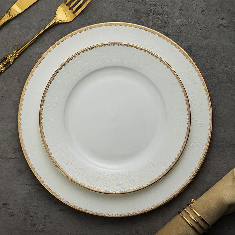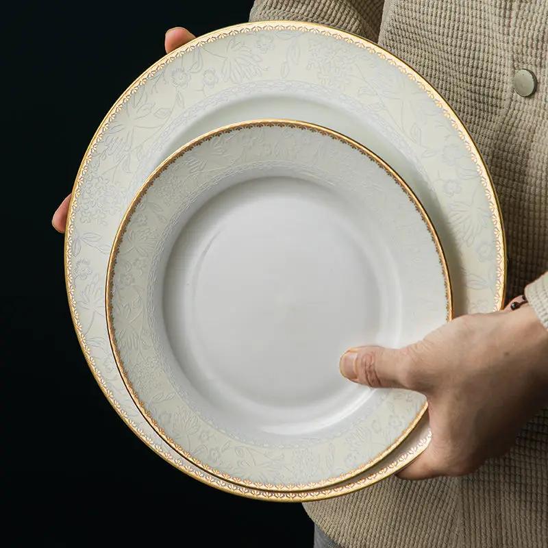 Креативная позолоченная цветочная костяная фарфоровая западная обеденная тарелка винтажные столовые приборы роскошная плоская тарелка керамическая посуда кухонная утварь