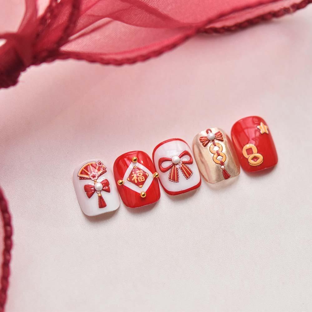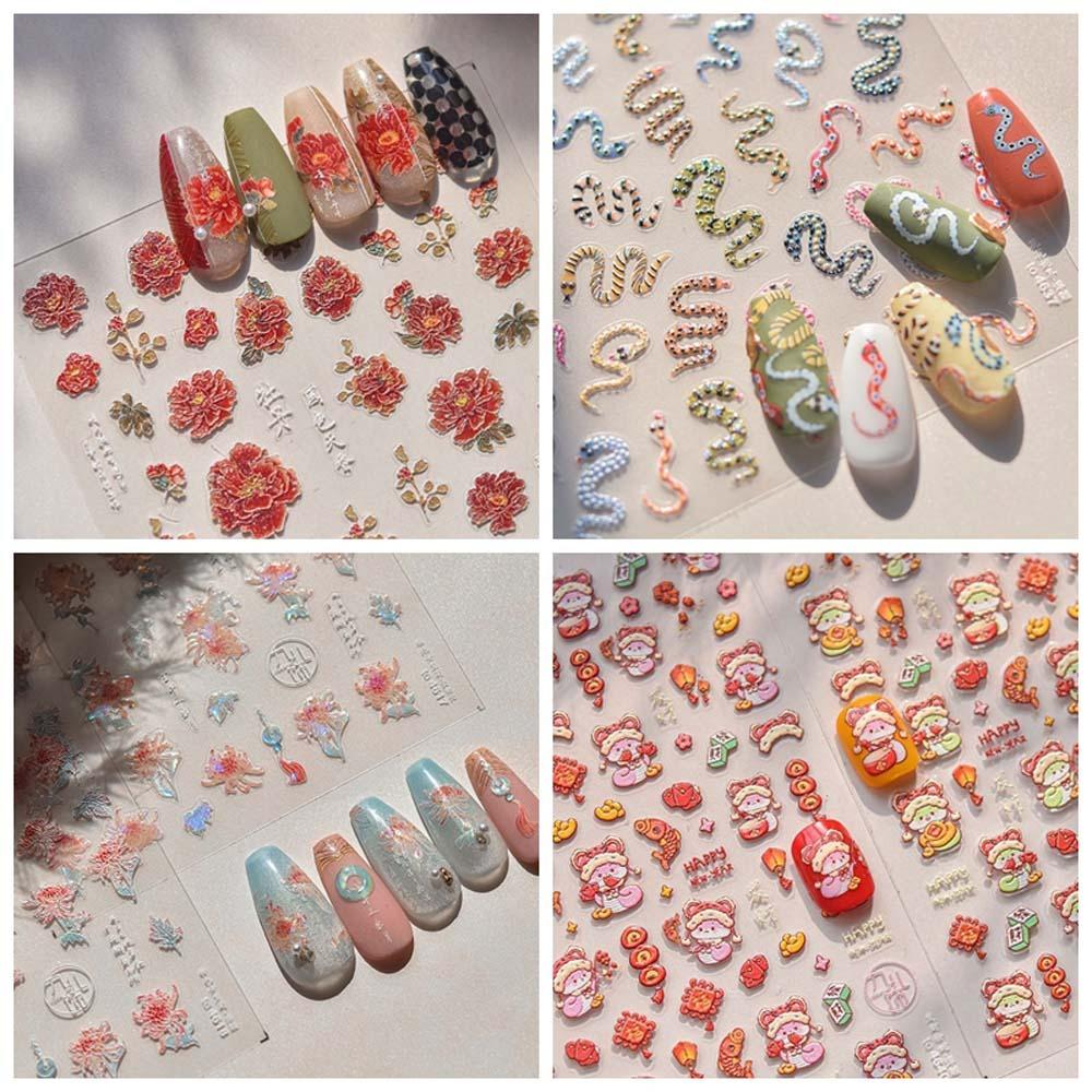 3D жемчужный бант китайский новогодний стикер для ногтей аксессуары для ногтей змея украшения для ногтей