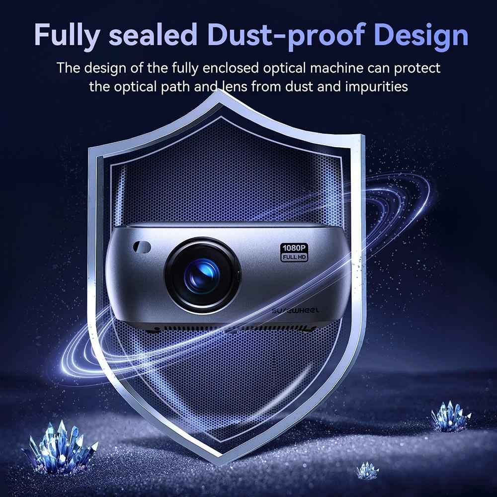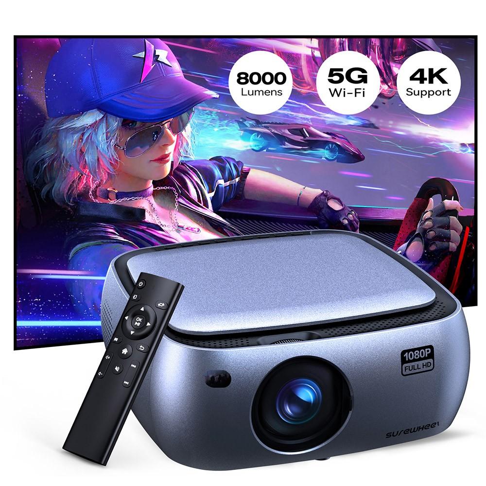 Проектор SUREWHEEL K10 Blu 5.0, независимо от того, подключается ли он к наушникам Bluetooth/колонкам Bluetooth/мобильным телефонам/планшетам и т. д., проектор K10 можно легко подключить. Проектор 5G WiFi оснащен передовыми чипами, которые эффективно устраняют помехи сигнала и обеспечивают более плавный и без задержек просмотр на 200-дюймовом экране.