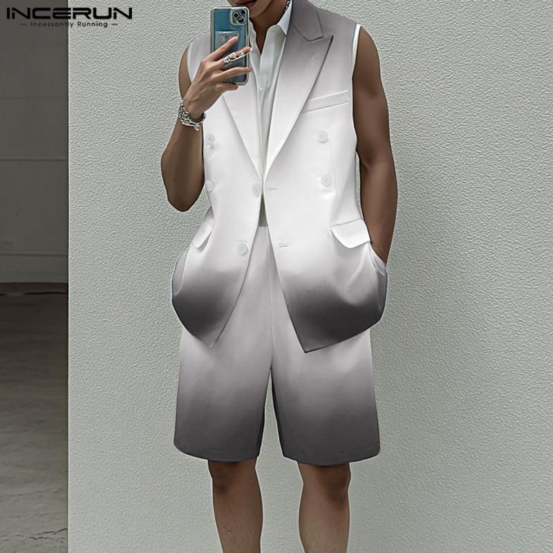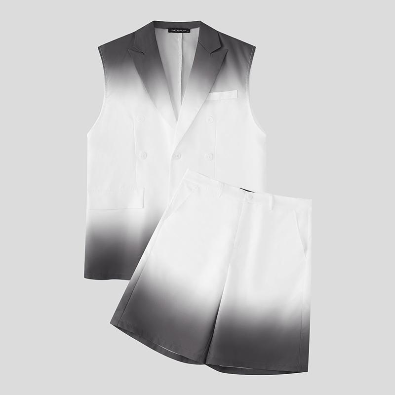INCERUN Мужской безрукавный градиентный жилет и свободные шорты, комплекты из двух предметов