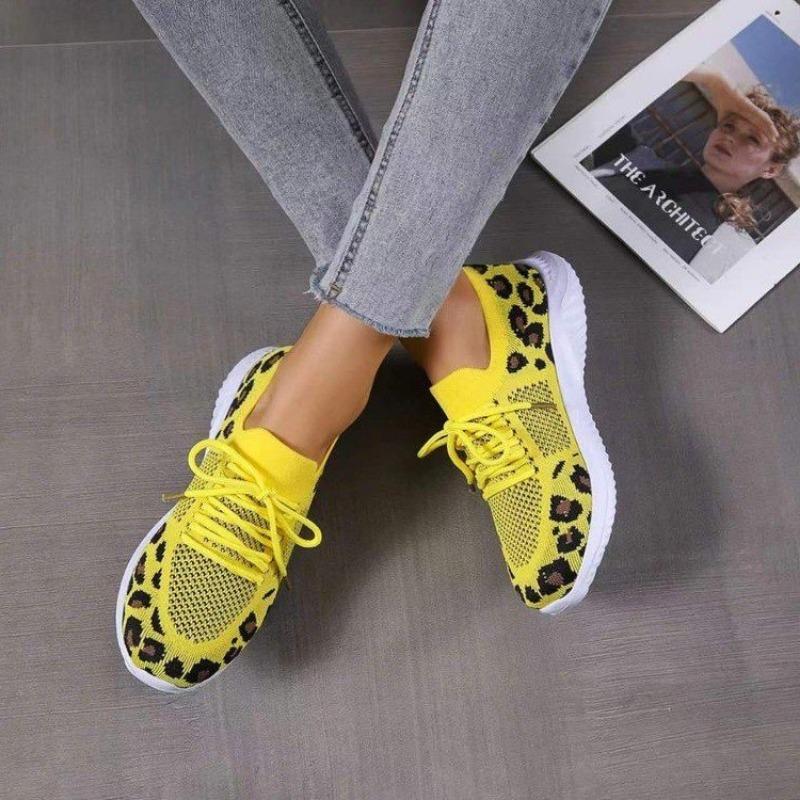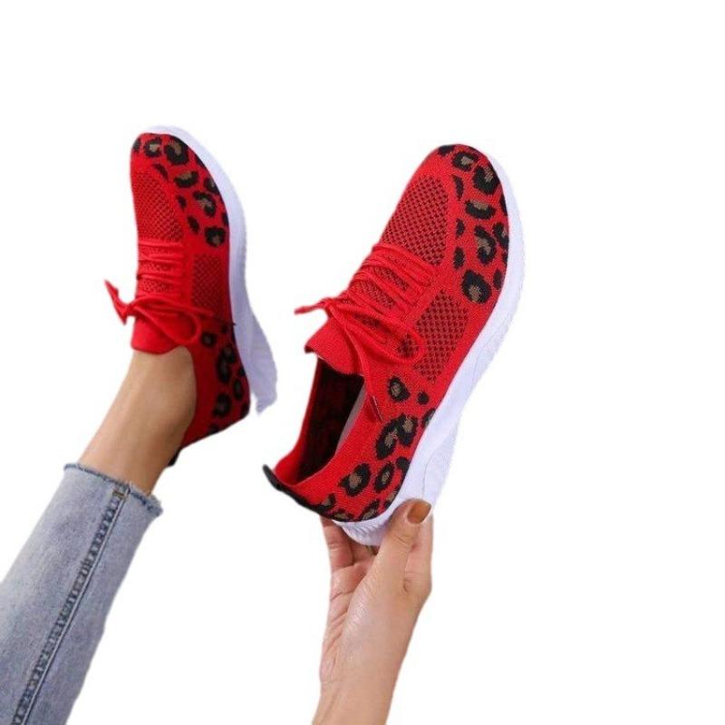 Женская обувь весна и осень новая леопардовый принт летящая тканая танкетка сетка повседневная спортивная обувь женская