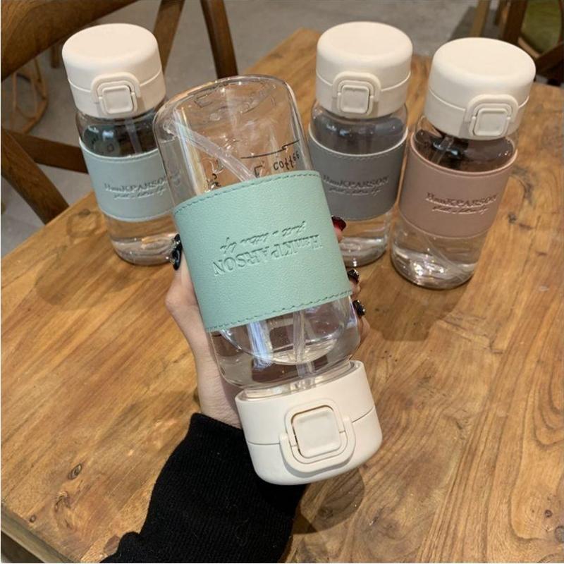Бутылка для воды 500 мл с трубочкой, портативная прозрачная, герметичная, для питья, для путешествий, офиса, для кофе, чая, бутылка для воды