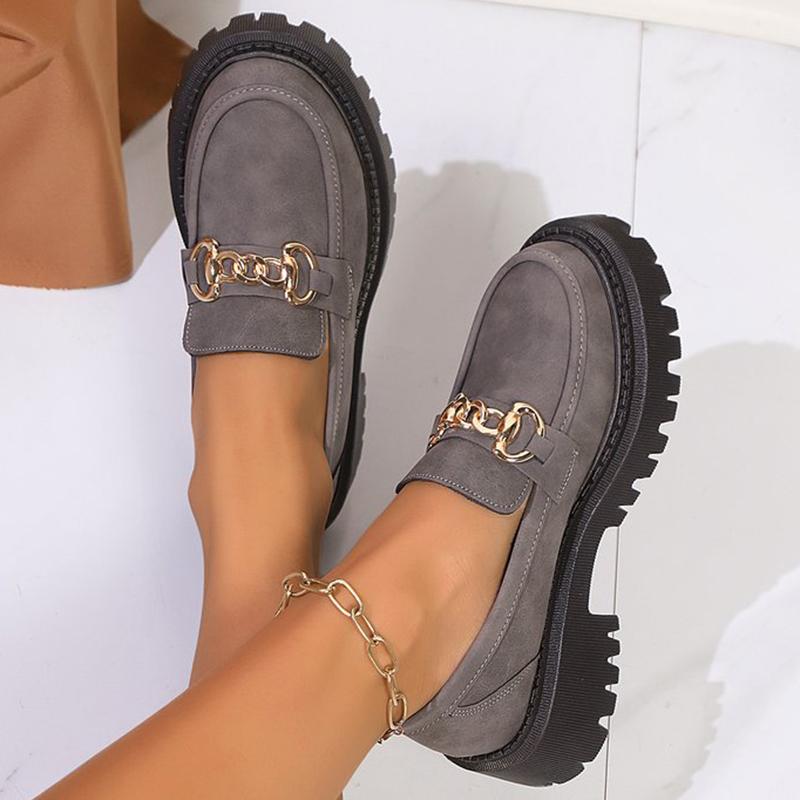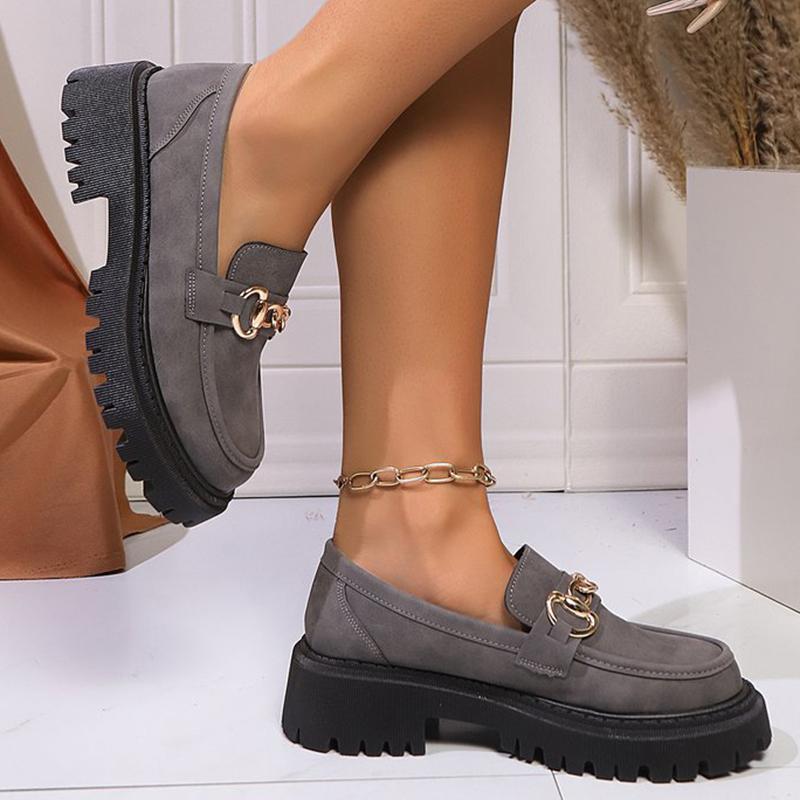 Модные металлические украшения Лоферы для женщин 2025 Серые Нескользящие Туфли на платформе Повседневные женские туфли из искусственной замши Слипоны Mujer