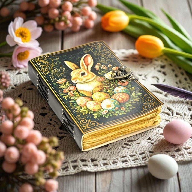 Кожаный блокнот с кроликом, Рустикальный блокнот для письма и рисования, Подарок для нее, Дневник ручной работы, Книга теней, Винтажная книга, Книга заклинаний, Журнал Гримуар - Книга заклинаний, Книга теней, Подарки для мужчин и женщин