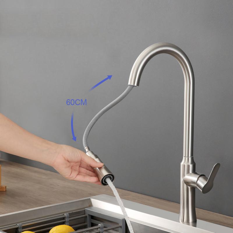 Выдвижной кухонный смеситель из нержавеющей стали 304, смеситель горячей и холодной воды с одним рычагом и двойной функцией, кухонный кран