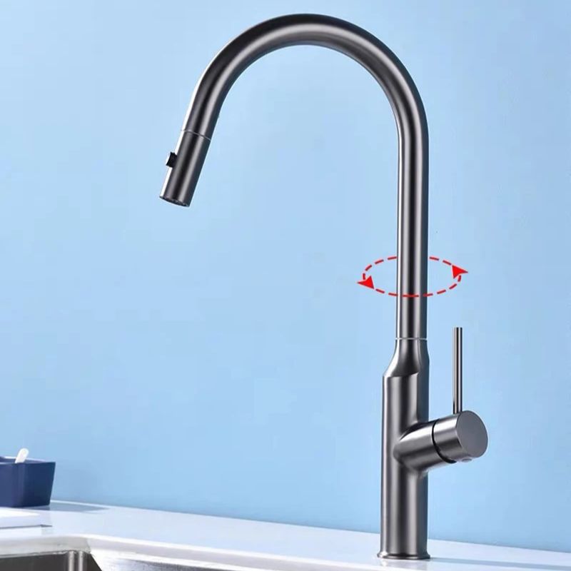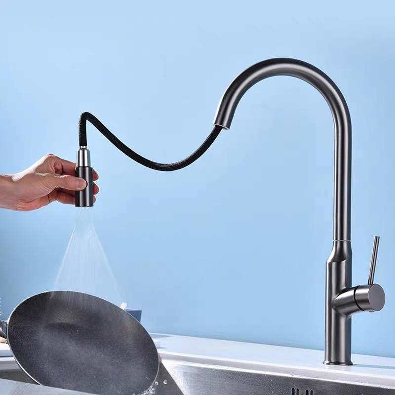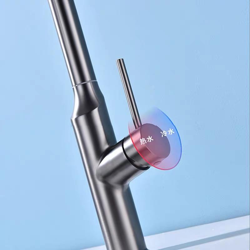 Двухфункциональный кухонный выдвижной смеситель для раковины, серый, нержавеющая сталь 304, горячая и холодная вода, одно отверстие, телескопический смеситель для раковины