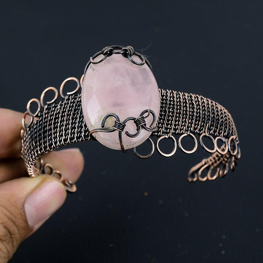 Браслет из розового кварца ручной работы, новейший дизайн, браслет из стерлингового серебра 925 пробы с драгоценными камнями, подарок для матери