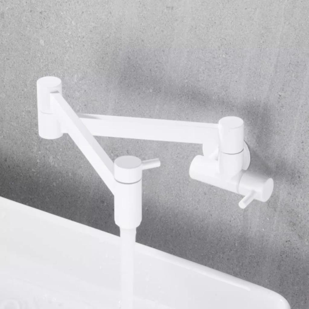 Pot Filler Tap Brass Wall Mounted Kitchen Sink Faucet 360 Rotate Folding Spout Spigot Single Cold Taps Black/White — купить товар онлайн с бесплатной доставкой по всему миру!