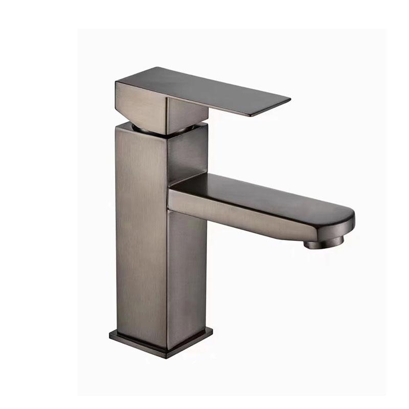 Gun Gray/Brushed Gold 304 Stainless Steel Bathroom Basin Faucet Deck Mount Single Handle Single Hand Square Sink Faucets Crane