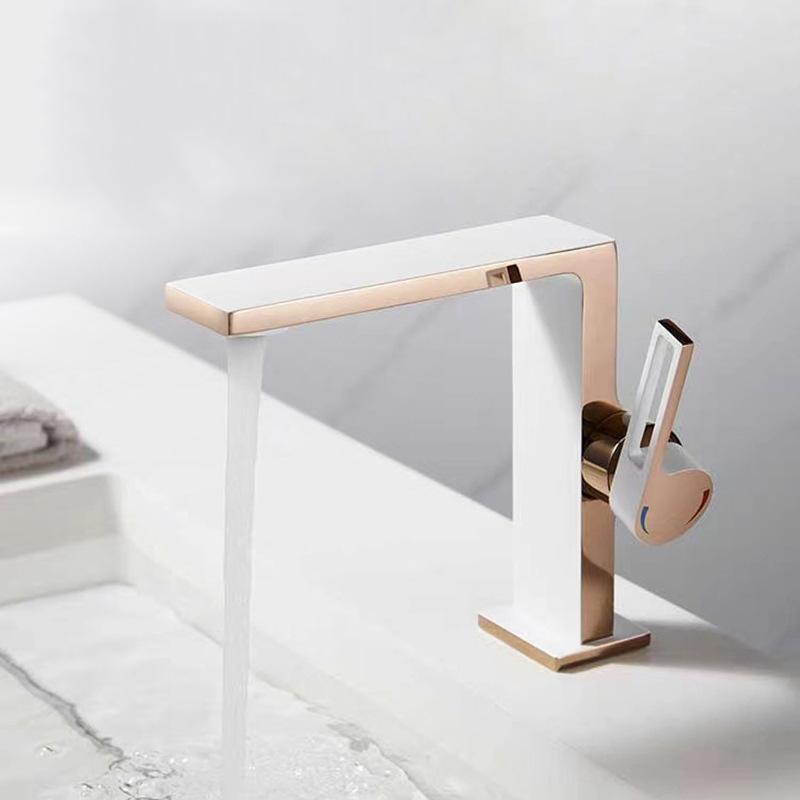 Белый Розовое Золото Смеситель для Раковины в Ванной Латунный Настольный Однорычажный Одно отверстие Холодный и Горячий Смеситель Воды Кран для Раковины Черный/Белый