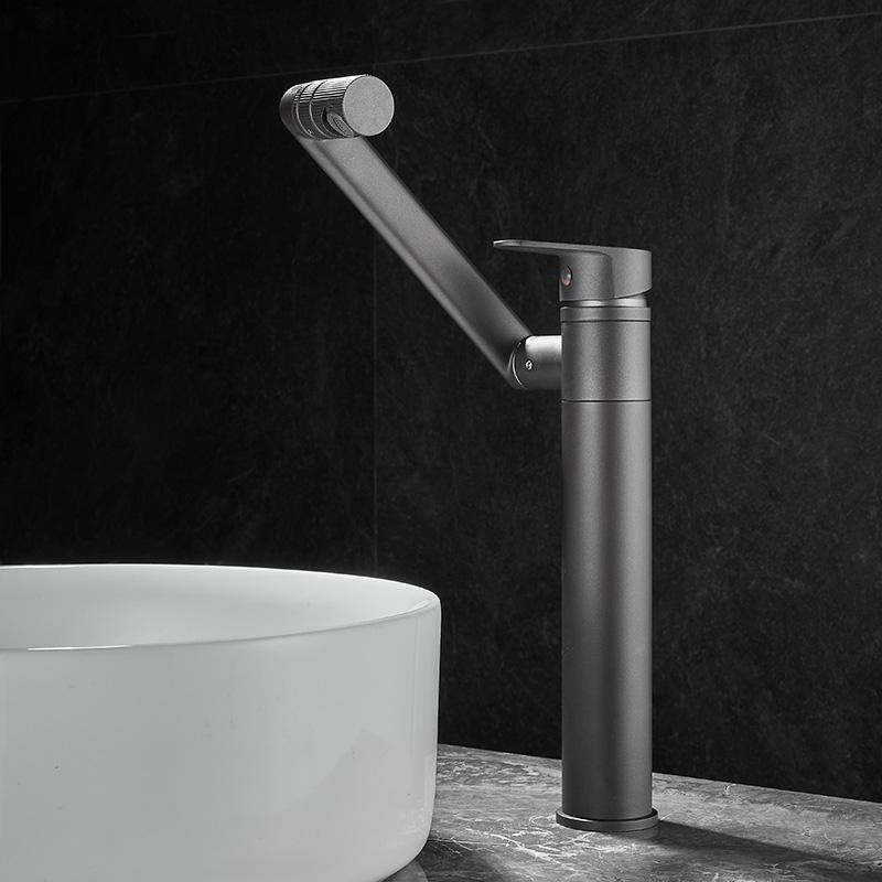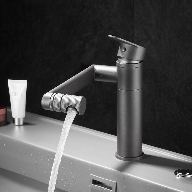 Цвет оружейный серый Смеситель для раковины в ванной комнате Смеситель для умывальника с монтажом на столешницу Вращение на 360 градусов Смесители для горячей и холодной воды Латунный смеситель для раковины