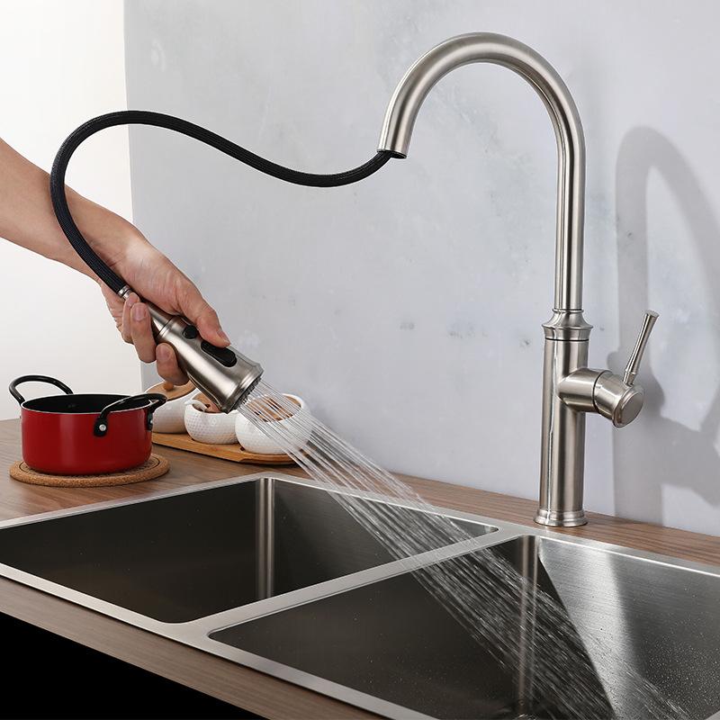 Stainless Steel Pull-out Kitchen Faucet Deck Mounted Mixer Tap 360 Degree Rotation Stream Sprayer Nozzle Kitchen Sink Faucet
