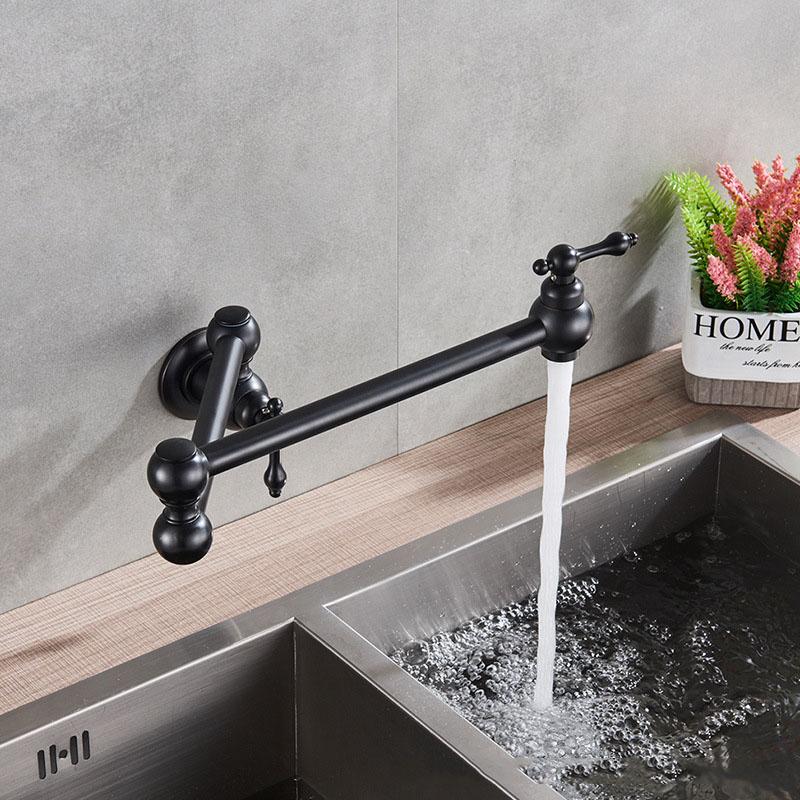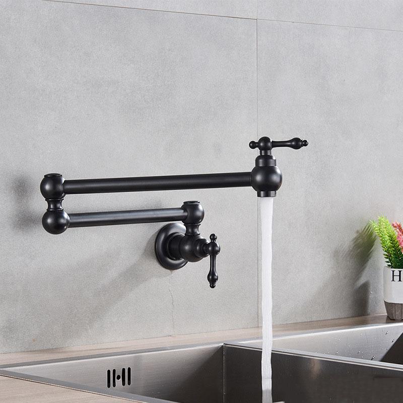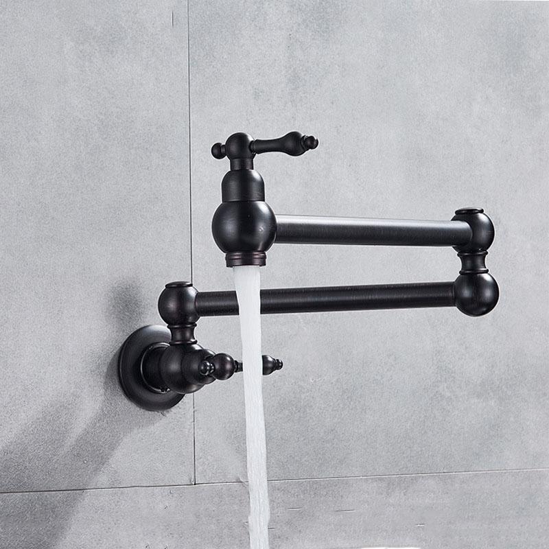 Латунный встраиваемый черный кухонный смеситель для раковины одинарный холодный поворотный на 360 градусов складной смеситель балкон прачечная бассейн удлиненный смеситель