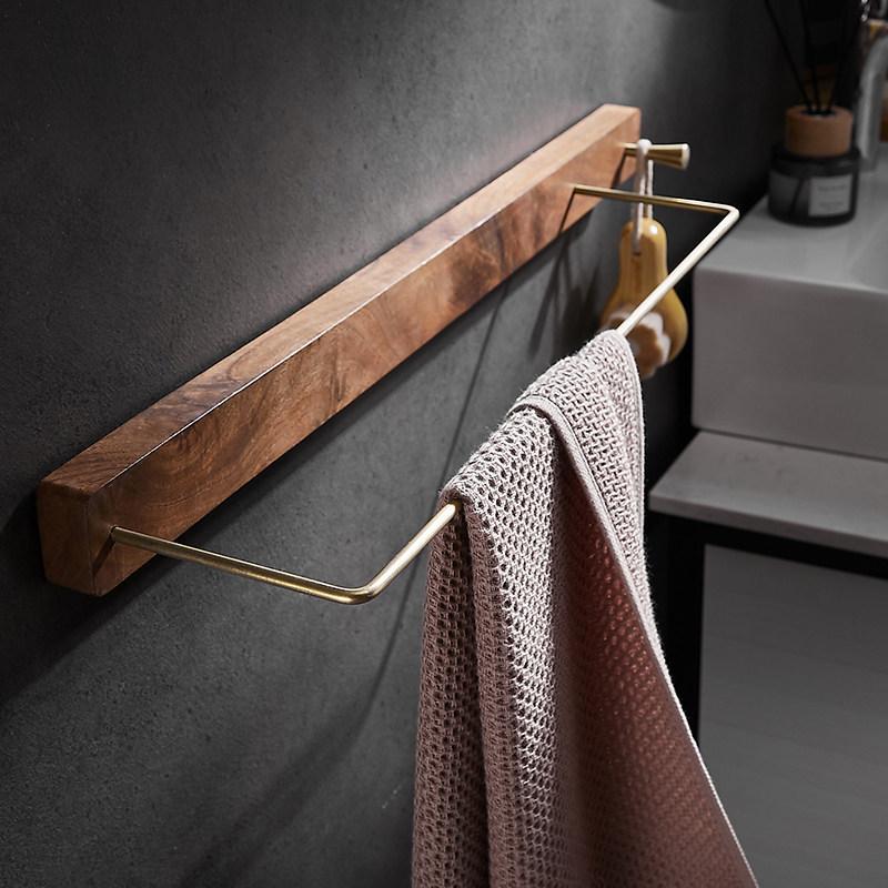 Solid Wood Bathroom Towel Bar Brushed Gold Towel Rack Wall Hanging Coat Hook Bathroom Storage Rack 30cm-45cm Towel Rod