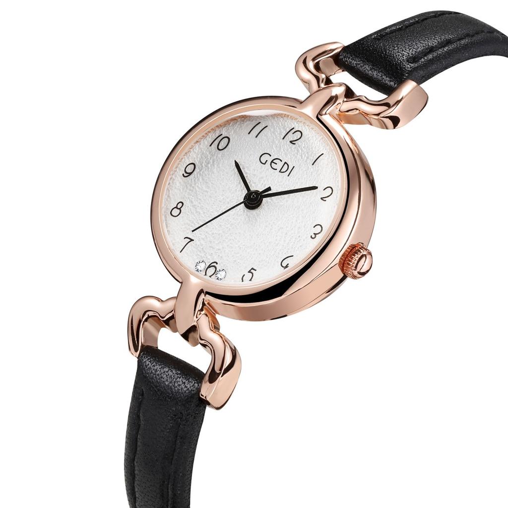 Смотреть Корейская версия Нишевые женские часы Простой циферблат с узором искры кожаный ремешок Водонепроницаемые Женские Модные Кварцевые Наручные часы
