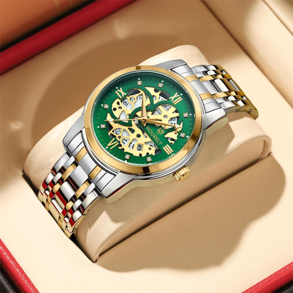 Новые деловые мужские кварцевые часы для отдыха, модные и трендовые, водонепроницаемые, с ночной подсветкой, кварцевые часы с бриллиантовой инкрустацией