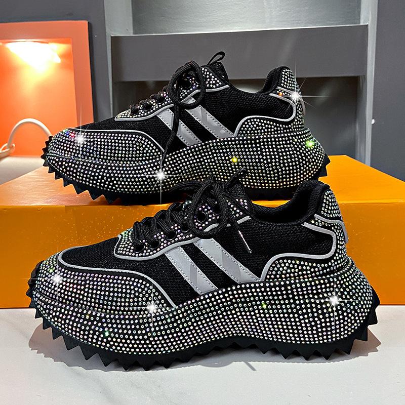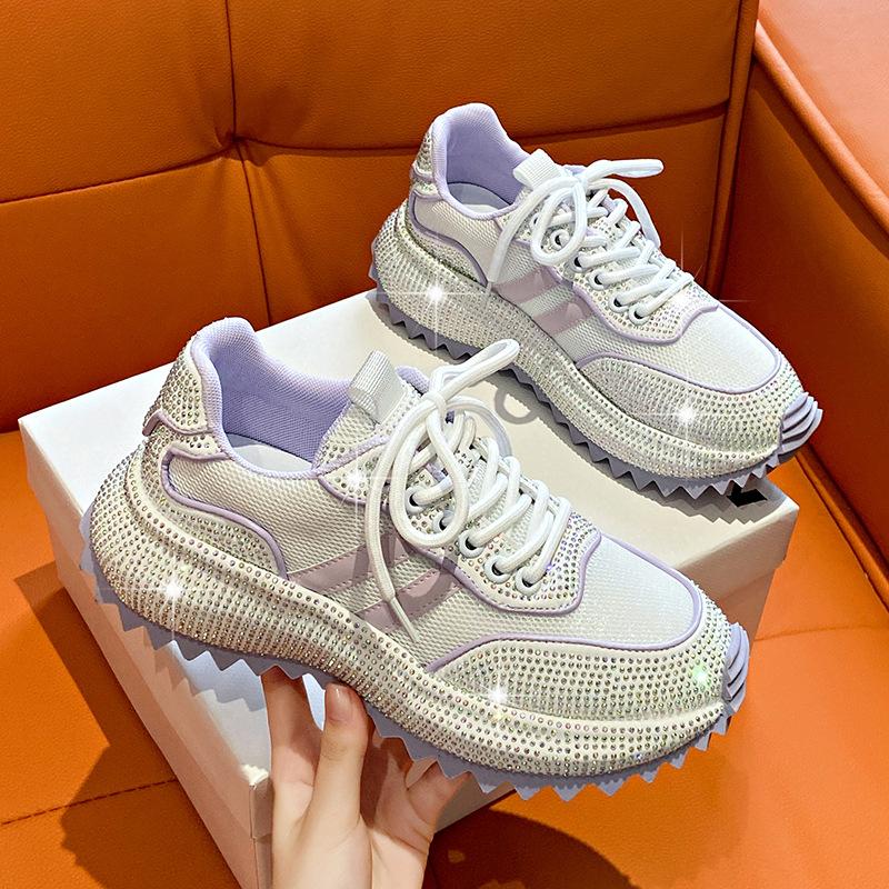 Мода 2024Женская обувь Стразы Женские кроссовки Бриллиантовые Дышащие Роскошные Дизайнерские Повседневные Толстая подошва Папины кроссовки Zapatos Mujer