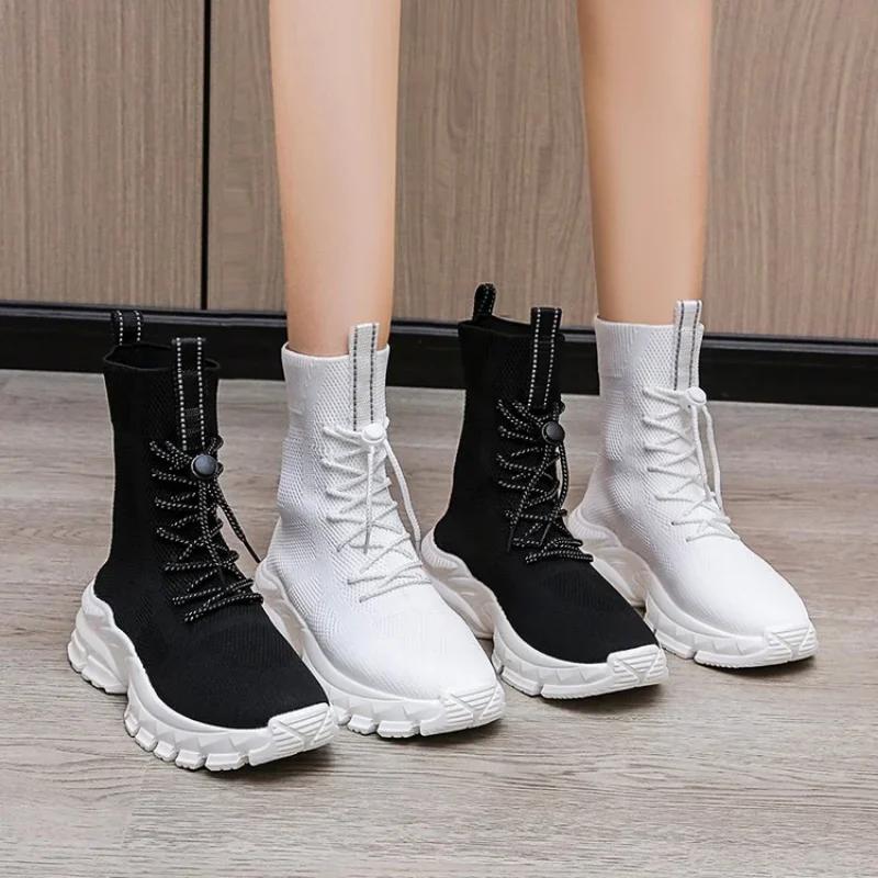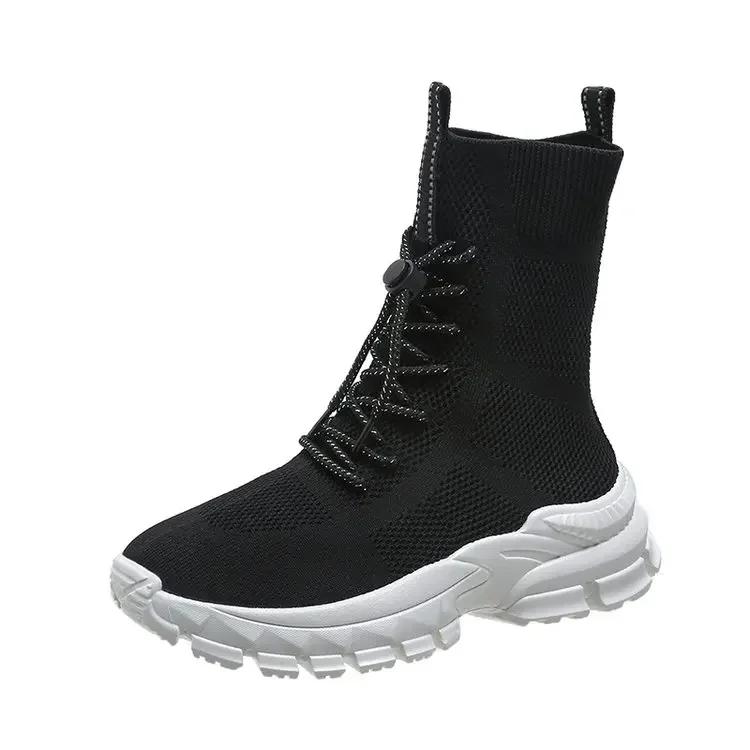Мода 2025 Осень Зима Новые Носки Обувь для Пары Женские Повседневные на Толстой Подошве Большого Размера Сетевые Красные Вязаные Короткие Ботинки Женские Botas De Mujer