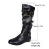 Модные плиссированные ботфорты до колена на плоской подошве Женские ретро коричневые из искусственной ПУ кожи Вестерн ботинки Женские с ремешком с пряжкой Декор Молния Длинные боты Mujer