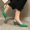 Модные летние женские босоножки с острым носком, элегантные туфли на каблуке, модные туфли-лодочки на среднем каблуке, женские шлепанцы, тренд 2025, платье, zapatos de mujer